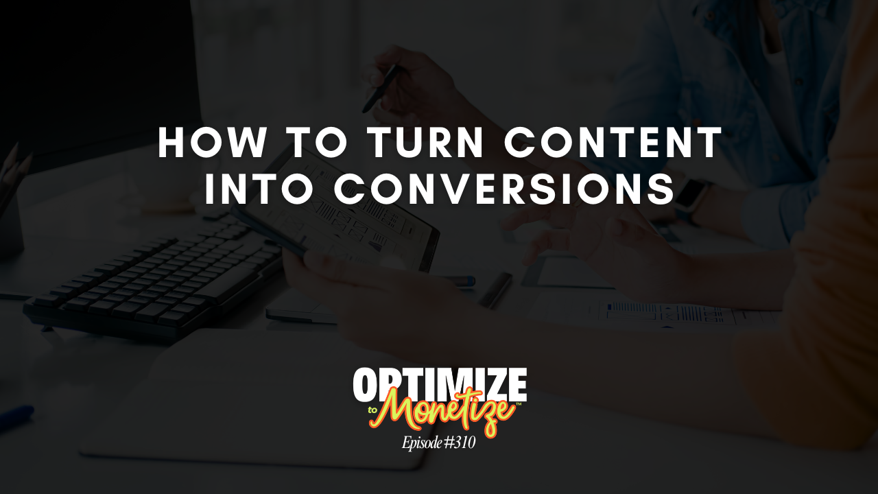 I started the Optimize to Monitize to be on this online marketing journey with you as your guide, encouraging you to keep pushing through and supporting you along the way – so you can build the business you love much faster and with a lot less tears.