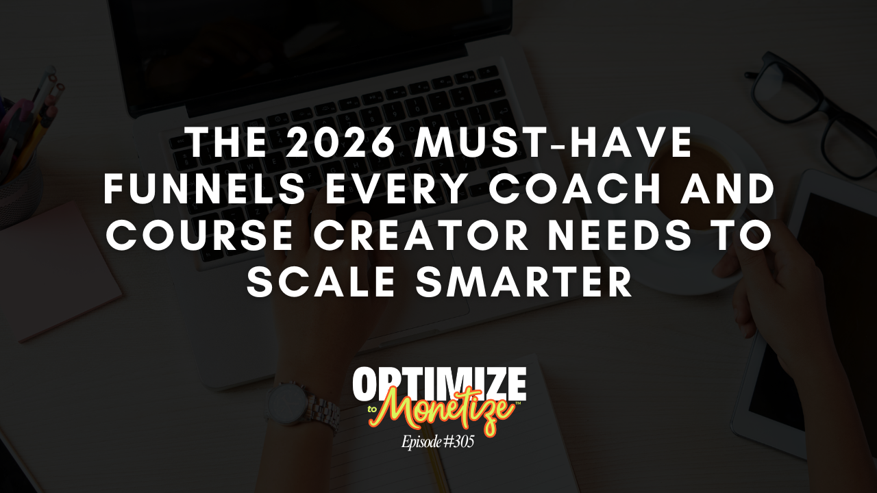 In this episode of the Optimize to Monetize podcast, Michelle breaks down the three must-have funnels for 2026, the ones that will quietly do the heavy lifting behind the scenes so you can scale smarter, not harder.